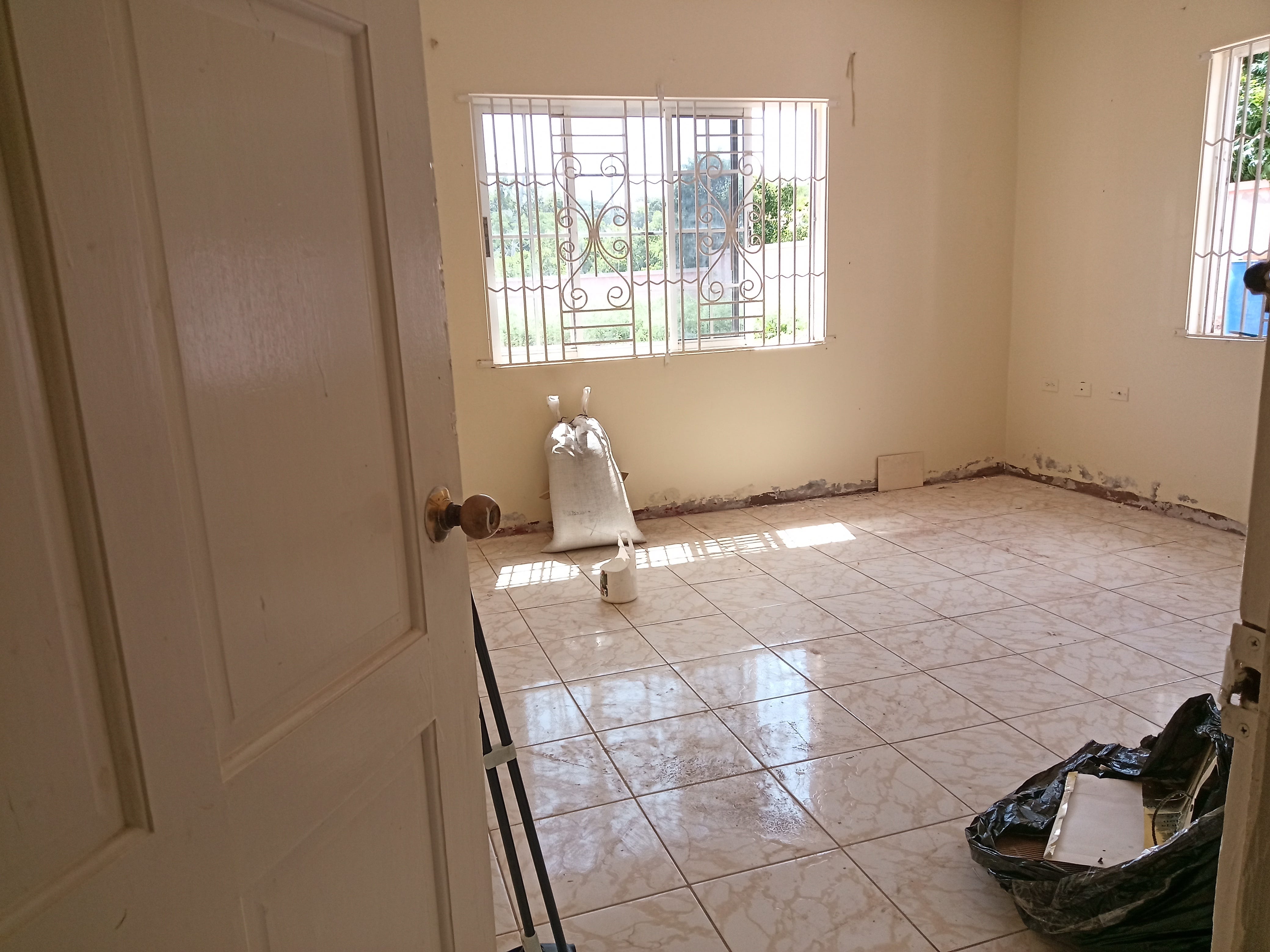 I asked that we not use the typical Jamaican custom of painting a dark color trim on the base. This is done to prevent frequent mop cleaning from staining the wall.